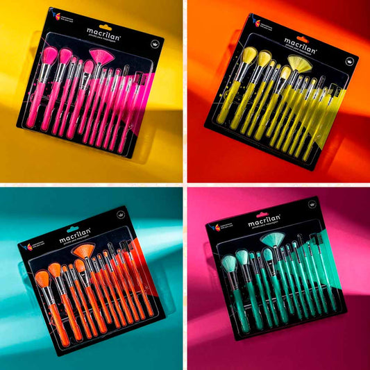 Kit 12 pincéis para maquiagem EN001 Linha NEON – MACRILAN